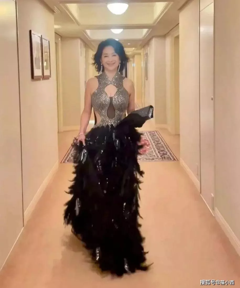 何超琼身上的披肩不仅薄如纸,而且面料光是看着就挺光滑,搭在手臂上只会感受到柔软,不扎肤。身上连衣裙所融入的颜色主要是红色、黑色,前者所占面料最多。在裙摆处,能看到红色竖纹,然后有黑色薄纱设计,可隐约看到腿型和肌肤。当年纪过了50岁,就算再爱美,也尽量穿跟低一些的鞋子,脚和小腿都不易累。