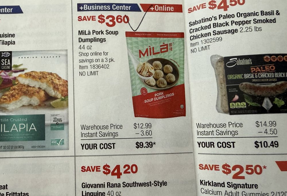 看看促销的价格怎能让人不动心,2.75磅的小笼包,原价$12.99, 减3.6, 实付9.39。按领导的话比一顿麦当劳还便宜,想想还真是呢。当下性价比高比什么都好啊。