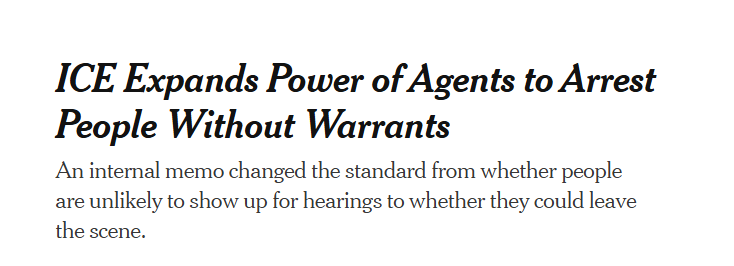 这一变化扩大了基层ICE特工进行“扫荡式执法”的权力,