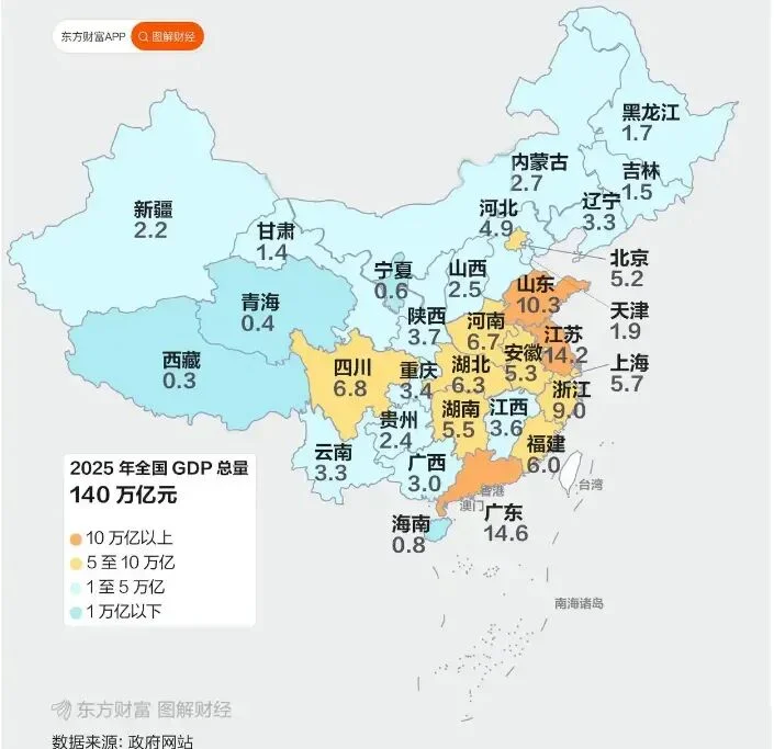 下面是,我们各省2025年GDP数据: