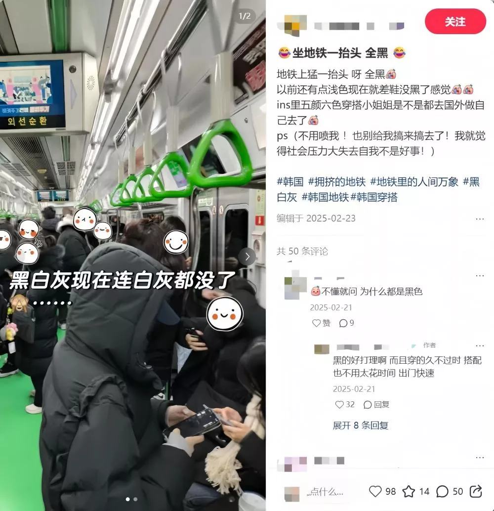 “北京穿搭像熔炉,来了就被熔进去”。在这样的人口密度下,人们倾向于“黑袍加身”,究其本质,源于选择黑羽绒服作为一种非言语的信号,无声地传递着“我属于这里——北京”的归属感。