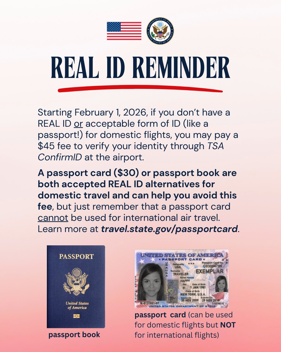— 美国运输安全管理局(TSA)从2月1日(星期日)起正式对乘坐美国国内航班但未持有 Real ID或其他被接受身份证件的旅客,实施 每人 45 美元的身份确认费(TSA ConfirmID费)。该项新规旨在强化航空安检身份验证,并将非合规旅客的额外处理成本转由个人承担,而非纳税人。