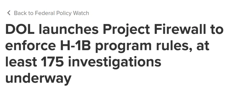 在Prject Firewall启动后,H-1B现场核查的性质已发生根本变化。过去被视为小概率事件的突击访问,如今正在常态化。