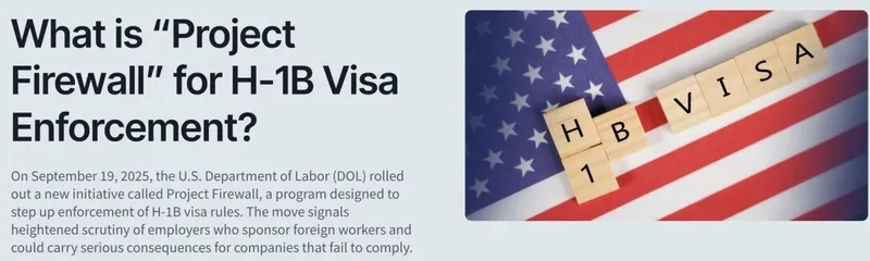 1月23日,《Financial Express》披露的一则消息,在美国华人职场圈迅速引起关注——一项代号为 Project Firewall(项目防火墙) 的H-1B专项执法行动,正在全美范围内低调推进。