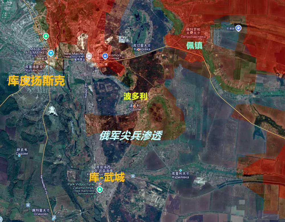俄军西部集群这边集中放出了一批插旗,以及步兵活动的视频,涉及到库皮扬斯克东区、佩特罗帕夫利夫卡、波多利等地,当然也包括库-武城。