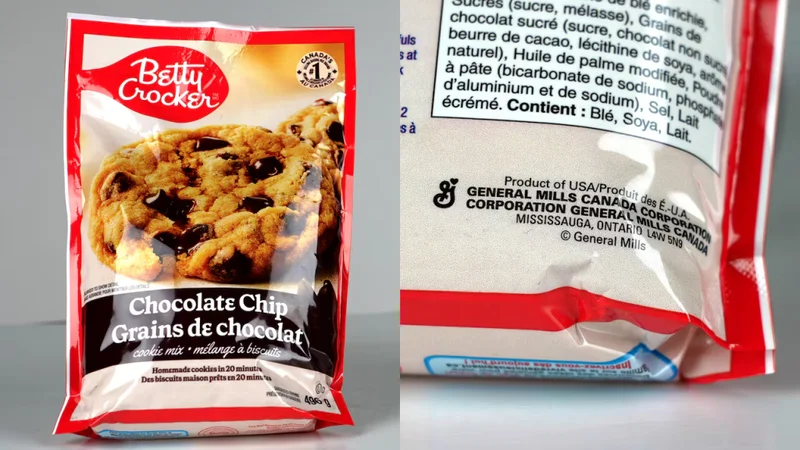 让他感到恼火的一件事是贝蒂妙厨的巧克力曲奇饼干预拌粉。包装正面印着枫叶,并写着“加拿大销量第一的烘焙预拌粉品牌”。但翻过来一看,却写着“美国制造”。