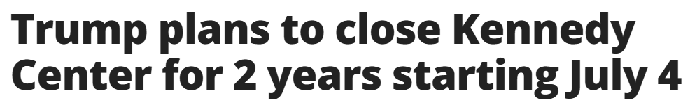 川普宣布肯尼迪中心将关闭两年Fox5DC