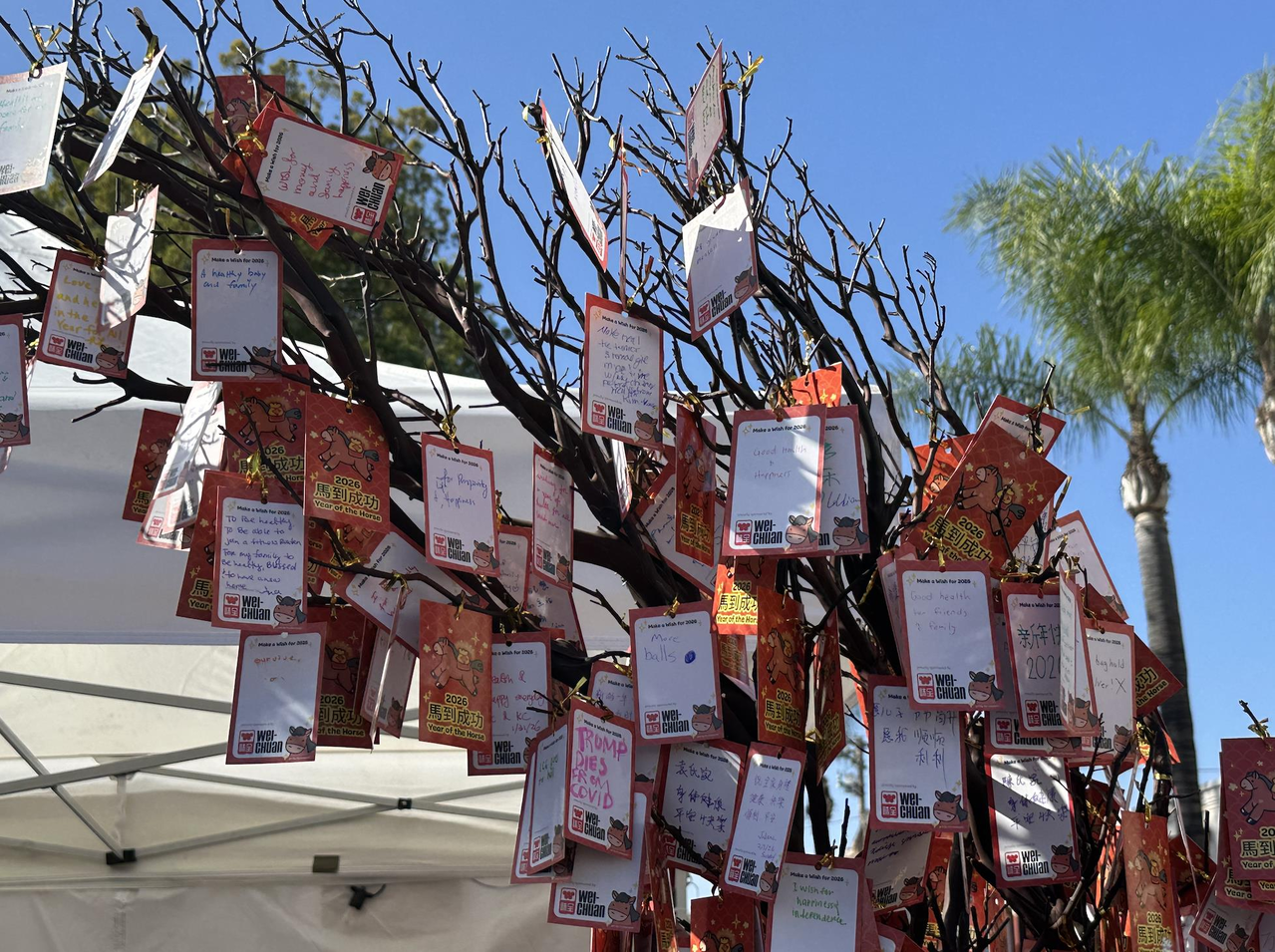 此外,由味全(Wei-Chuan)赞助的「许愿树」也成为人气站点。树上挂满了红色的许愿卡,民众纷纷写下对新一年的期许与祝福,在繁华的年节集市中,留下最温馨的文化注脚。
