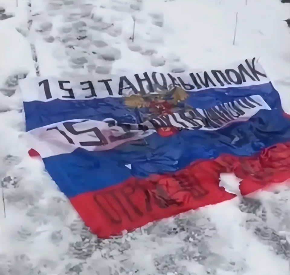 所以这条视频发出来后,俄罗斯人自己都绷不住,而乌军这边则更来劲了,又拍了段视频,内容是掏出了一面俄军第153坦克团的旗子,声称消灭了该团的一个3人插旗小组,缴了这面旗子。