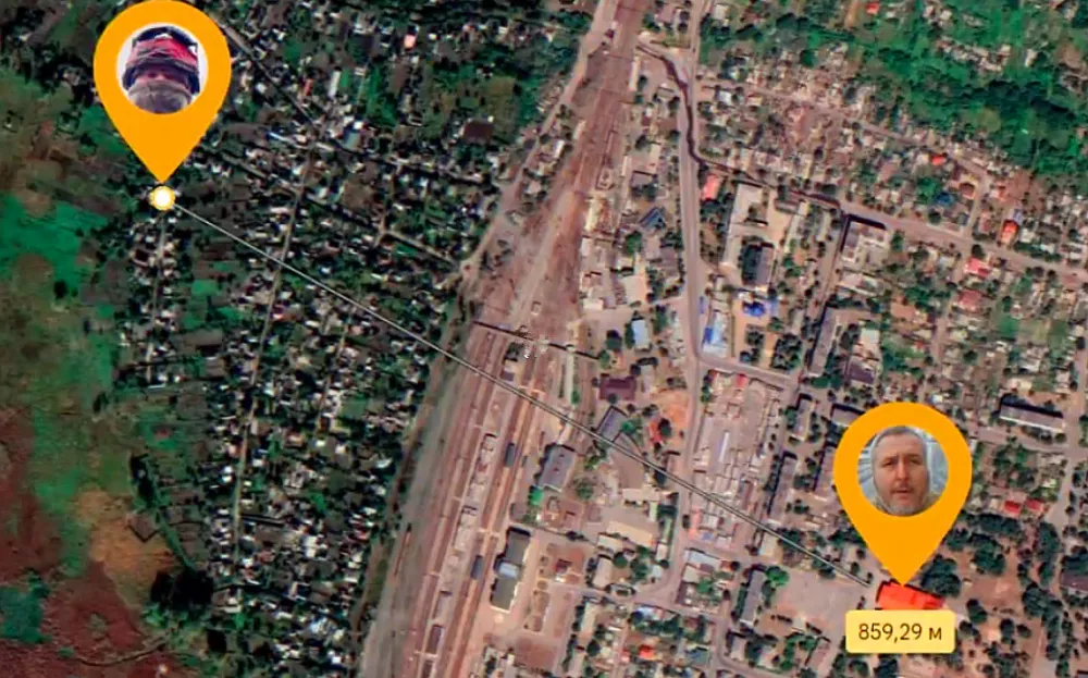 按照俄罗斯这边的说法,俄军士兵的点位距离乌军营长只有800多米,不过一个在火车站西边的城区边沿,一个在火车站东边的城区中心;一个是全副武装,一个是无盔无甲。