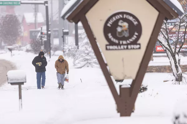 ▼田纳西州民众冒雪上街。