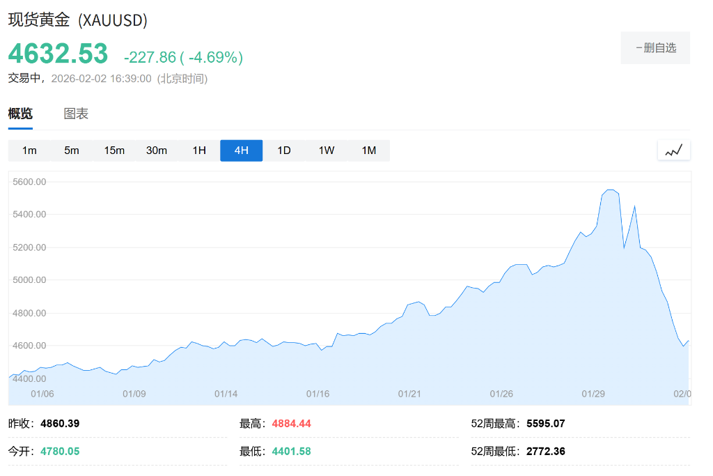 周一的贵金属市场延续周五下跌趋势,现货白银单日暴跌7%,现货黄金暴跌4.7%,一度跌破4500美元关口。
