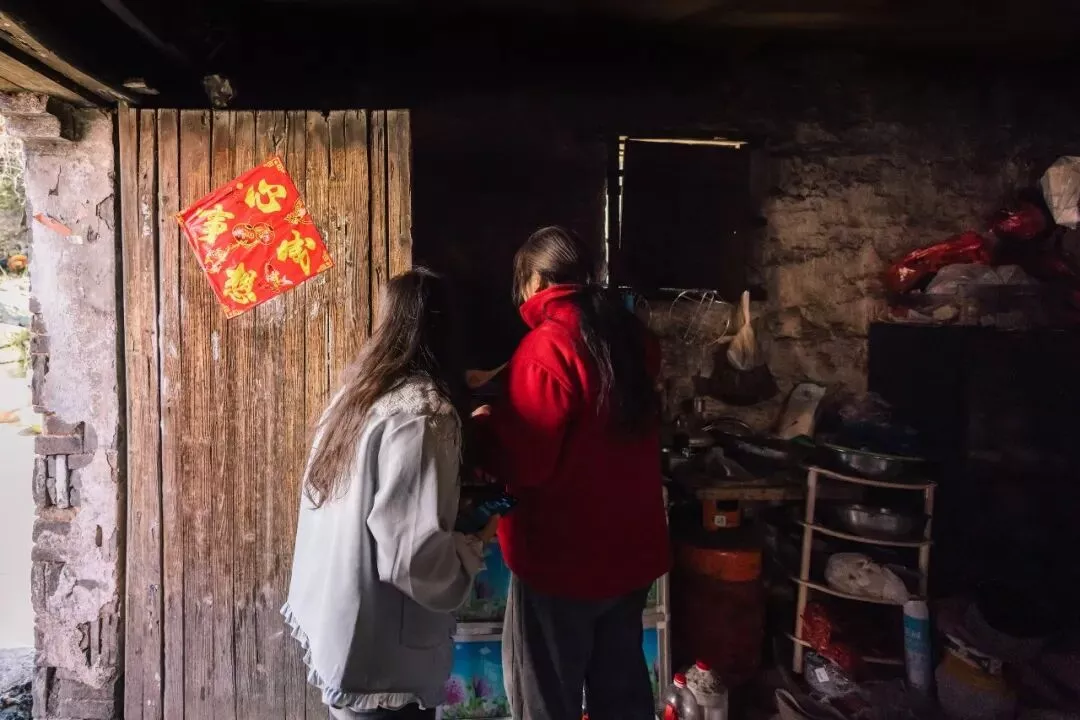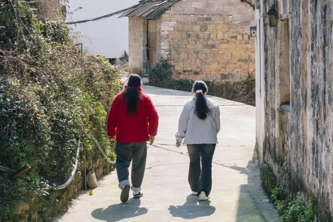 2025年3月,燕子(右)在老家陪母亲干家务活