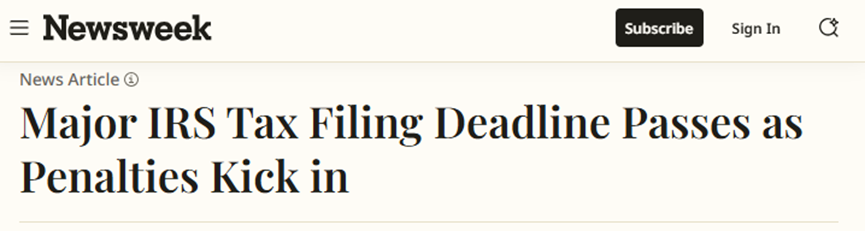 IRS关键报税截止期已过,滞纳罚金启动新闻周刊