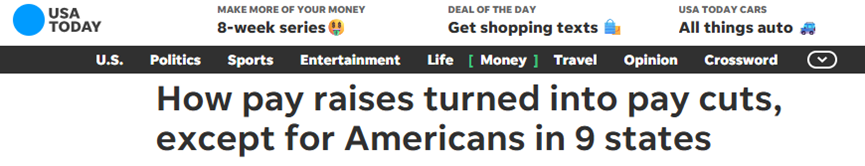 认证职业指导师Jasmine Escalera在报告中写道,“换言之,全美范围出现了‘账面加薪,实际减薪’的现象。”