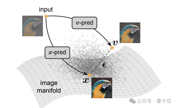 这背后的假设是流形假设(manifold hypothesis):自然图像实际上位于一个低维流形上,让网络直接预测这个低维流形上的量,比预测高维噪声空间中的量要容易得多。