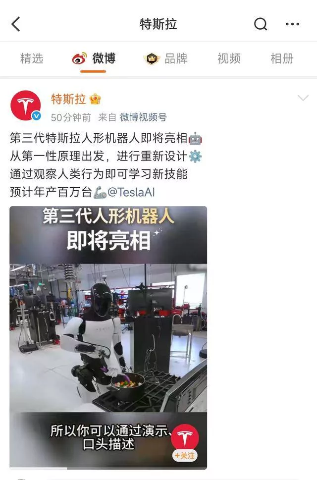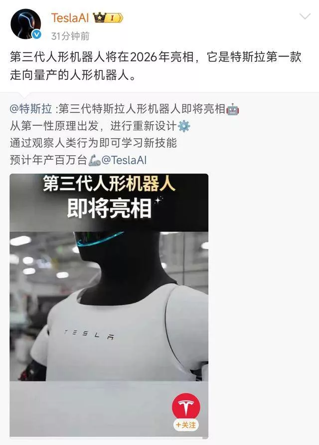 特斯拉首款量产机器人?擎天柱三代即将亮相