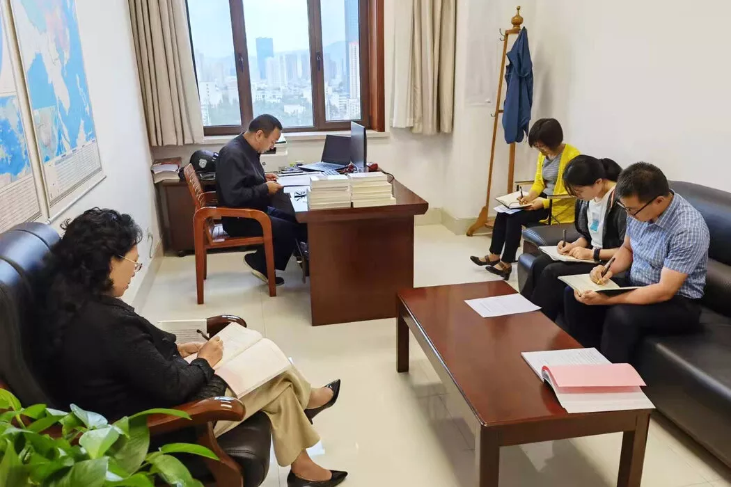 2021年,马瑞林在办公室与同事进行党建活动;也是在这间屋子里,他一直秘密地进行祷告。