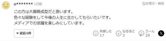 池谷实悠的留学经历被日媒报道后,引发了热议。有人认为池谷实悠能够为理想坚持这么久,很厉害: