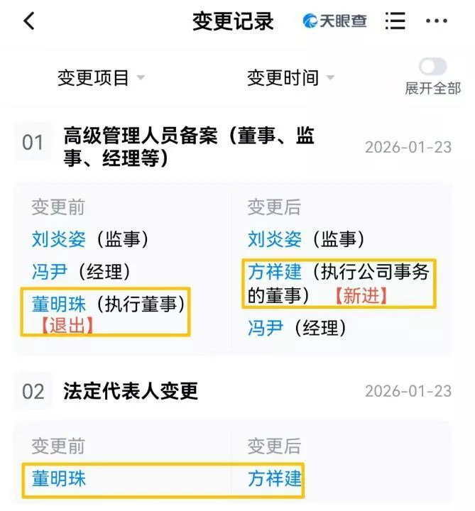 据天眼查公开信息披露,近日,珠海格力电子元器件有限公司近期进行了工商信息变更,董明珠不再担任该公司法定代表人及执行董事职务,改由方祥建接任法定代表人,并出任执行公司事务的董事。