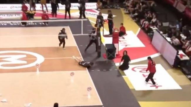 排球运动员打到人,头朝地滑翔道歉新唐人