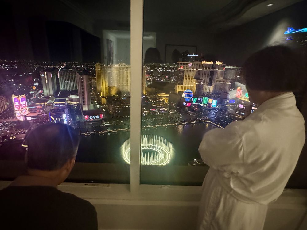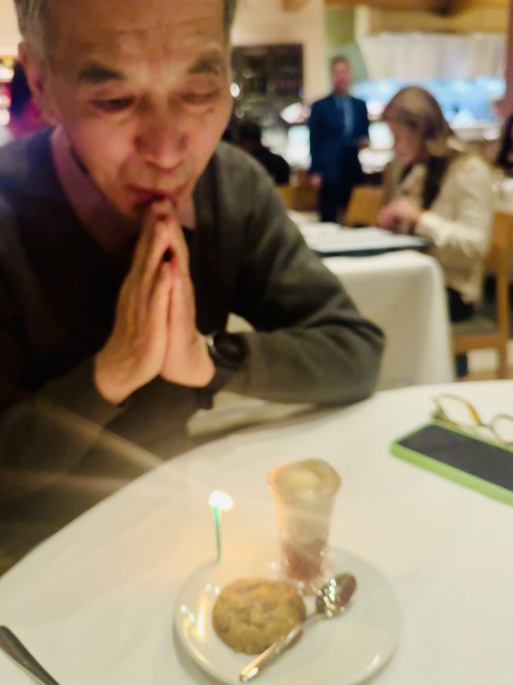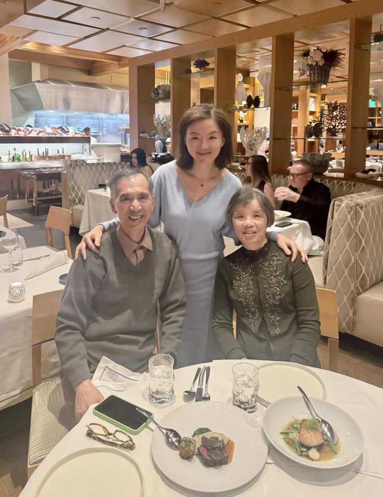 然后一起去吃米其林餐馆。借爸爸的光。哈哈。这个周末是爸爸生日。他的生日总在春节附近,我们总要去vegas看春节装饰。菜品真的是精致,每一道菜都有惊喜,服务也非常出色。