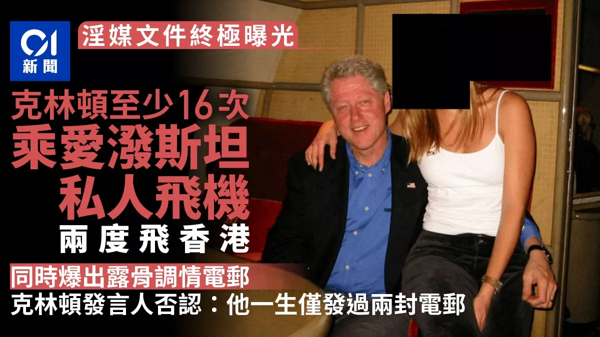 美国司法部1月30日公布最后一批有关已故富豪淫媒爱泼斯坦(Jeffrey Epstein)文件,包括300万份文档、近20万份图片及影片资料。当中,民主党籍前总统克林顿(Bill Clinton)被发现两度搭乘爱泼斯坦的私人飞机抵达香港、转飞内地。