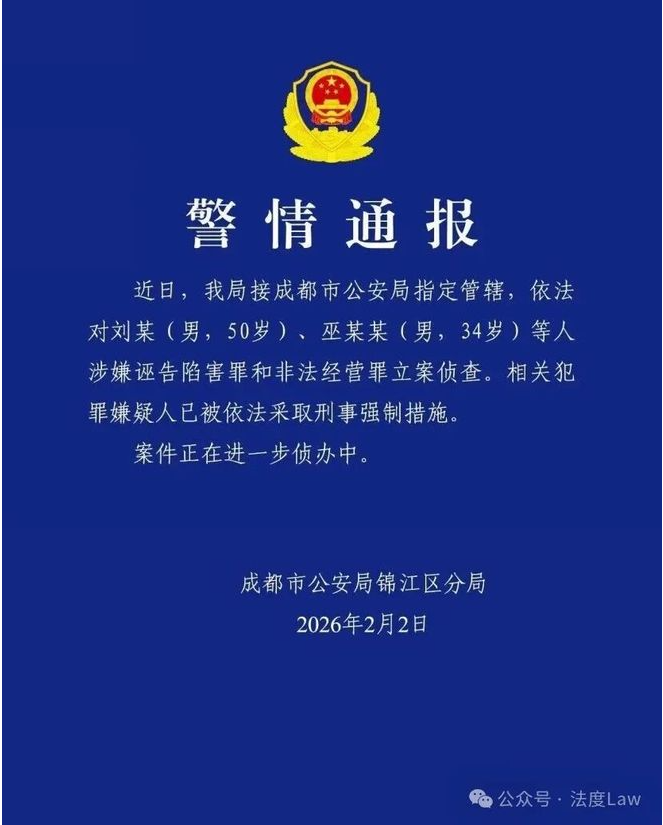2026年2月1日凌晨,成都市公安局经侦支队的人到了重庆。