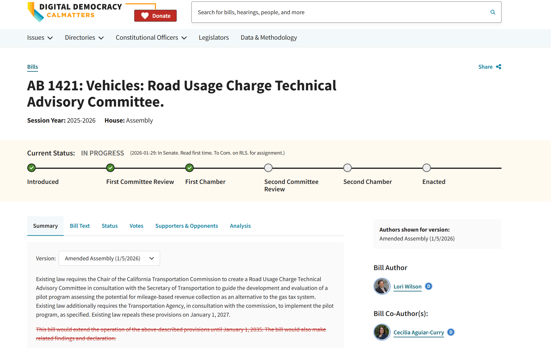 1月29日周四,州议员推进了民主党籍议员Lori Wilson提出的AB 1421号议案。该提案并不直接实施里程税,而是要求加州交通委员会和州交通局继续研究基于行驶里程征税的可行方案。