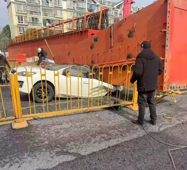 2月1日 上午11时16分,武汉市江岸区后湖大道地铁施工区域龙门吊拆卸发生意外倾斜倒塌,直接砸中一辆行驶中的白色轿车,导致车体严重变形人员伤亡。 pic.twitter.com/QWI7cH9YGy