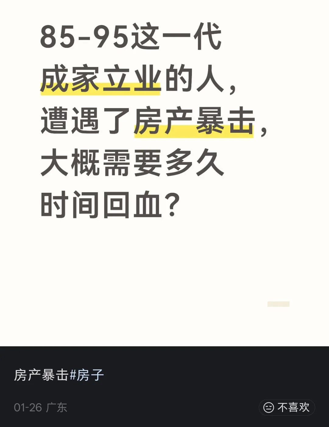 夫子也是85后,网上经常有人问,对于85-95这代人,一旦遭遇房产暴击,回血大概得多久?