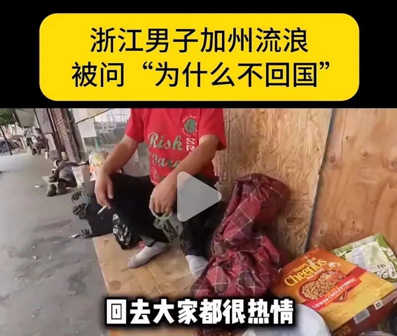 视频中,一名自称来自浙江的华人男子,被拍到疑似在当地流浪。拍摄者与他进行了一段简短对话,而其中关于“为何不回国”的回答,很快在网络上掀起争论。