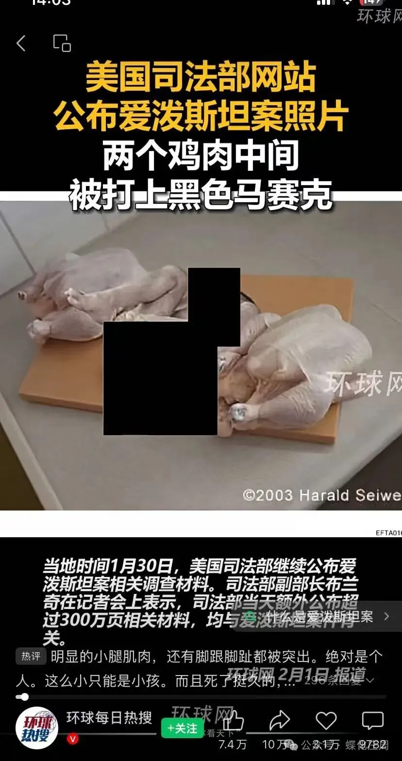 2月1日,《环球网》发视频说,美国司法部网站公布爱泼斯坦案照片。