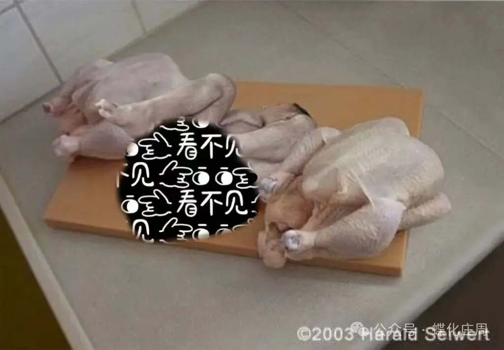甚至直接说:两个鸡肉中间被打上马赛克疑似人体。
