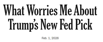 What Worries Me About Trump’s New Fed Pick https://t.co/6qBSeqmlBA — Sue Jones, MD (@bbubbis) February 2, 2026