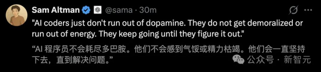「AI程序员就是不会耗尽多巴胺。他们不会感到沮丧,也不会耗尽能量。它们会一直坚持下去,直到解决问题」。