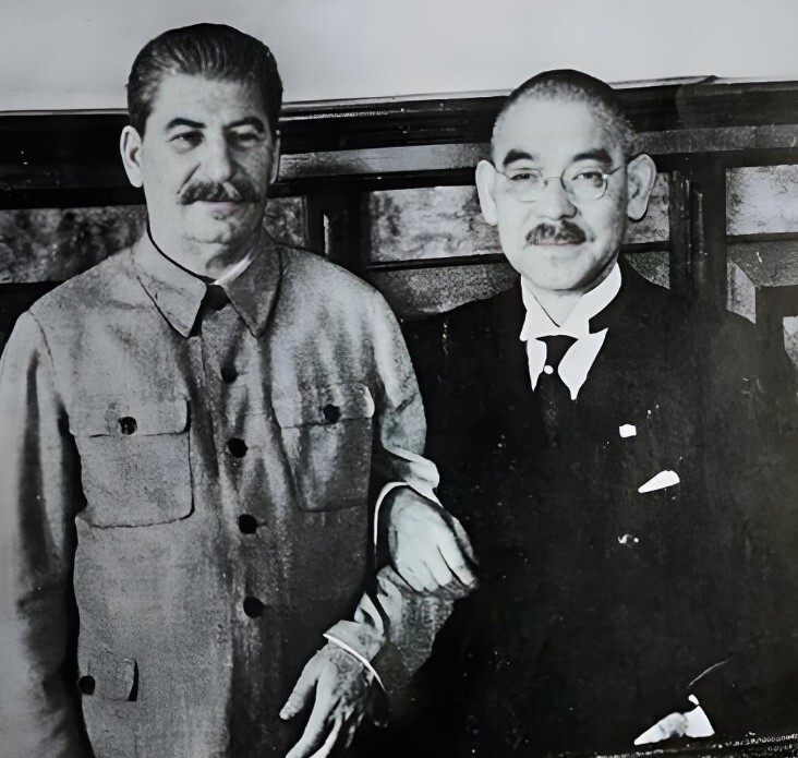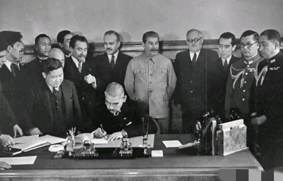 1941年,苏联更是和日本签署了《苏日互不侵犯条约》。看看斯大林笑得有多开心,就知道他们当时同样不敢得罪日本人。