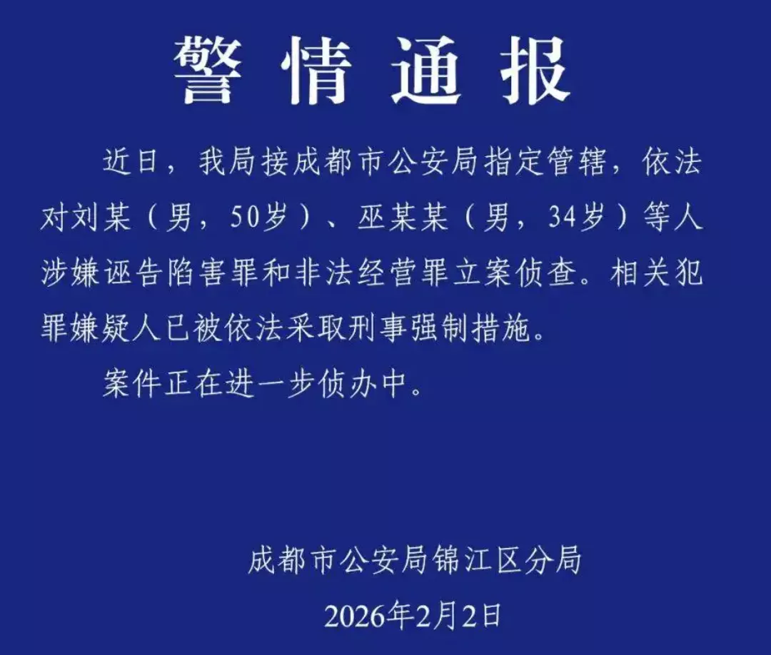也就是说,成都警方的手里,一定已经掌握了一些可以初步作为证据的东西,这些东西支撑他们把两个人先抓了起来刑事立案。比如材料、资金往来、证人陈述等等。