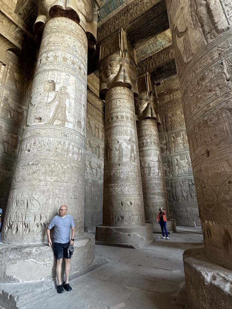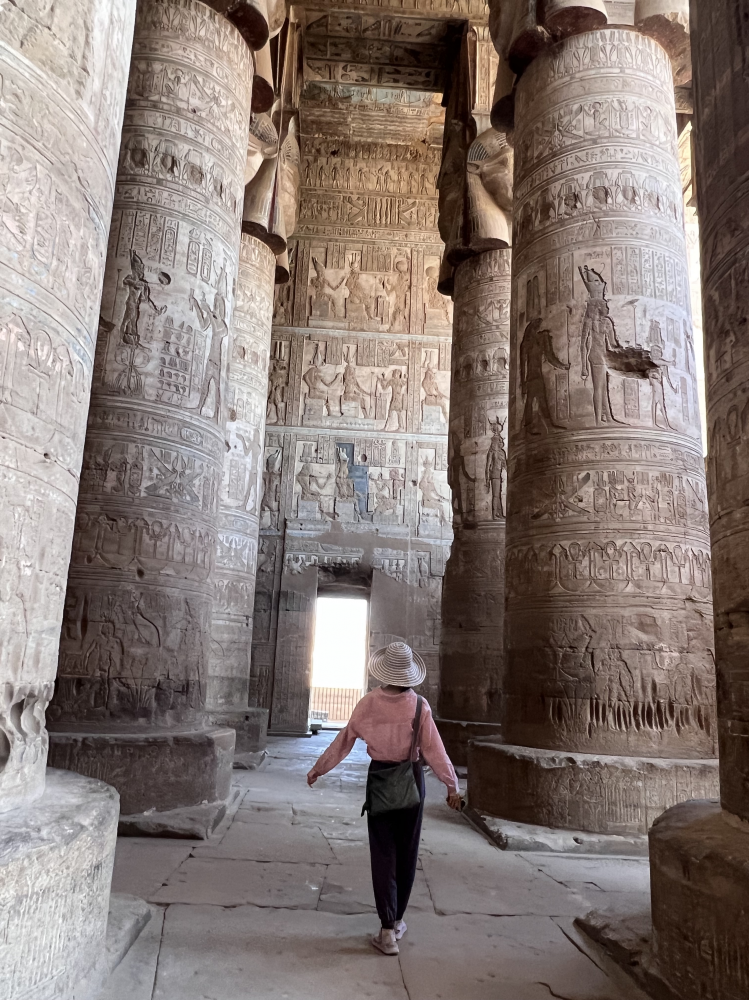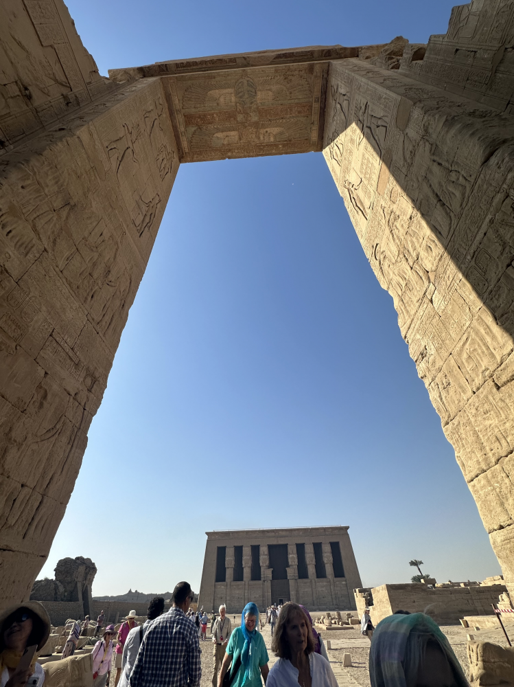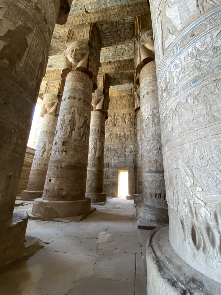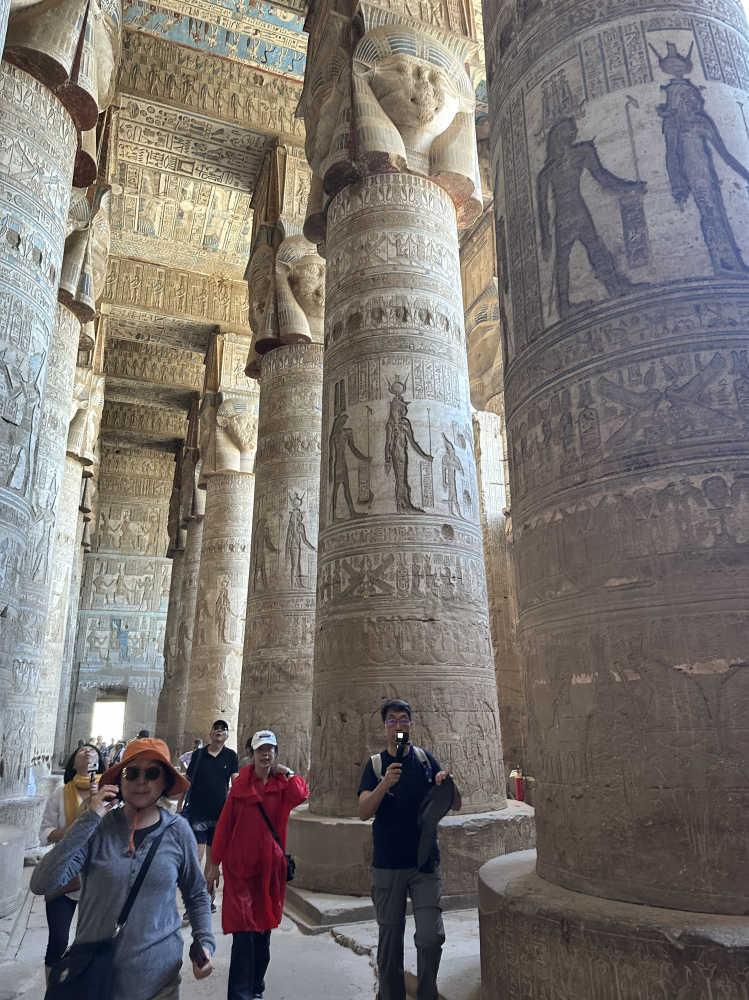 1. 丹达拉神庙(Dandarah Temple):是埃及保存最完好、也最具艺术魅力的古埃及神庙之一,位于尼罗河西岸、卢克索以北约60公里的丹达拉小镇。神庙主要供奉哈托尔女神(Hathor),她是古埃及最受欢迎的女神之一,象征着爱、美、音乐、舞蹈、欢乐、母性与生命的更新。在古埃及人的信仰中,哈托尔既温柔慈爱,又具有守护与治愈的力量,因此丹达拉神庙在古代是极为重要的宗教中心。神庙主体建于托勒密王朝时期(约公元前1世纪),虽年代晚于卡纳克和卢克索神庙,却完整继承了古埃及传统的宗教与艺术风格。也正因为建造较晚,加之长期被沙土掩埋,使这座神庙得以保存得异常完整。