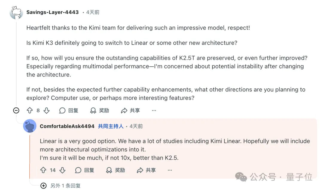 对于大家最关心的下一代Kimi K3,团队给出了一个相当硬核的预告——它很可能基于线性注意力机制。