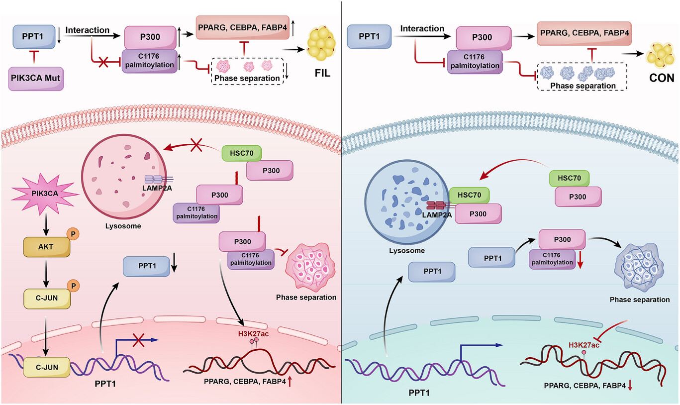上海交通大学医学院附属第九人民医院整复外科教授林晓曦团队,揭示了磷脂酰肌醇-3激酶(PI3K)催化亚基的编码基因PIK3CA引发面部浸润性脂肪瘤病相关异常脂肪过度生长的分子机制,首次将蛋白质棕榈酰化、细胞内相分离行为与表观遗传调控联系起来,为相关疾病的精准干预提供了潜在的治疗靶点。1月29日,相关研究成果发表于《先进科学》。