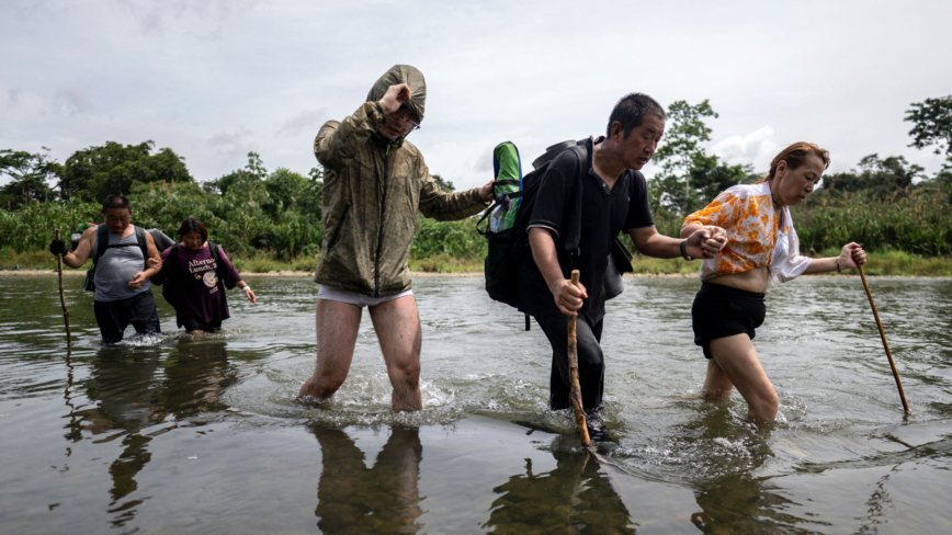 资料图。历经千辛万苦,向美国挺进的“走线客”。(LUIS ACOSTA/AFP via Getty Images)