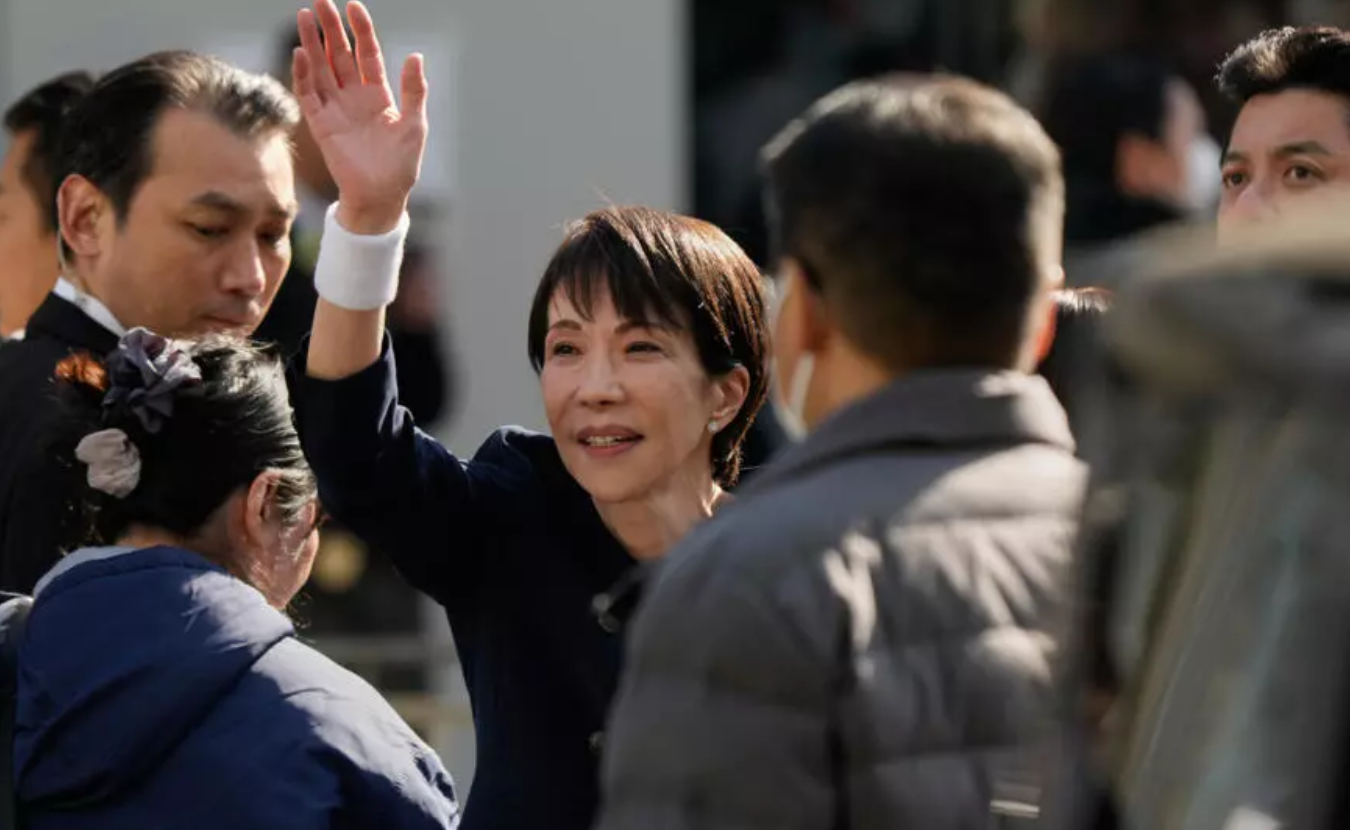 2026年1月27日星期二,日本首相兼执政党——自民党总裁高市早苗(中)在东京与日本革新党联合举行竞选集会,向民众致意。 © Eugene Hoshiko / AP