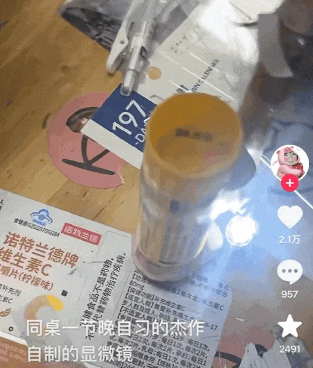 就在这几个月内,陆续就有学生在保证安全、不影响学习的前提下,用劣质原料,复刻出了具备实用效果的显微镜望远镜等装置,引得不少同学们效仿。