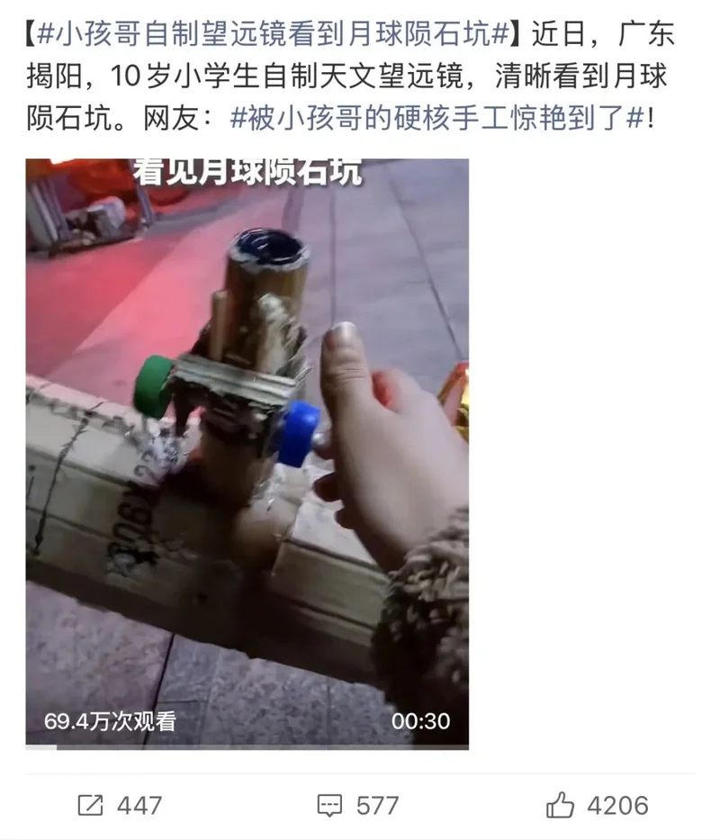例如,这个说法之所以最早流行起来,很大一部分原因,就出在校园里开始流行“手搓显微镜和望远镜”的奇观上。