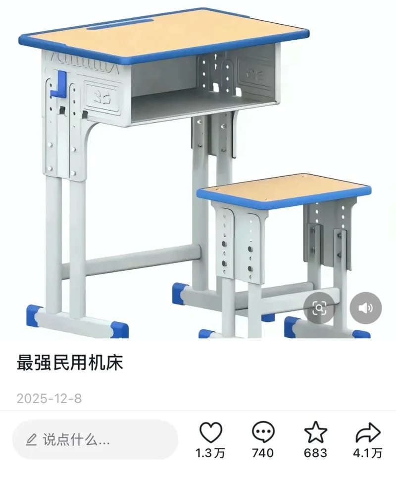 如今,这原本只负责承载作业和胳膊肘以及困意的东西,已经被学生们郑重其事地命名为“民用机床”。