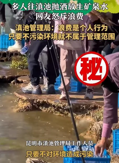几天前,一条名为“多人往滇池抛洒放生矿泉水”的话题冲上了微博热搜。视频画面里,一群人带着数箱矿泉水聚集在云南滇池边,口中念念有词,快速拧开水瓶盖子并转着圈地把水泼进湖里。仔细观看,放生人群中甚至还有儿童的身影。