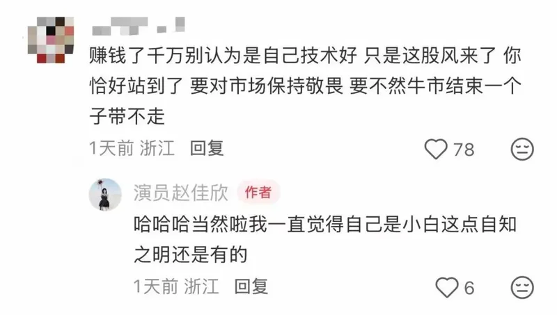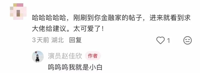 近日,演员赵佳欣在社交平台分享自己的基金投资经历,引发网友关注。她先是晒出收益,称自己买基金一个月盈利超5万元,还被朋友调侃是“被演戏耽误的金融家”。
