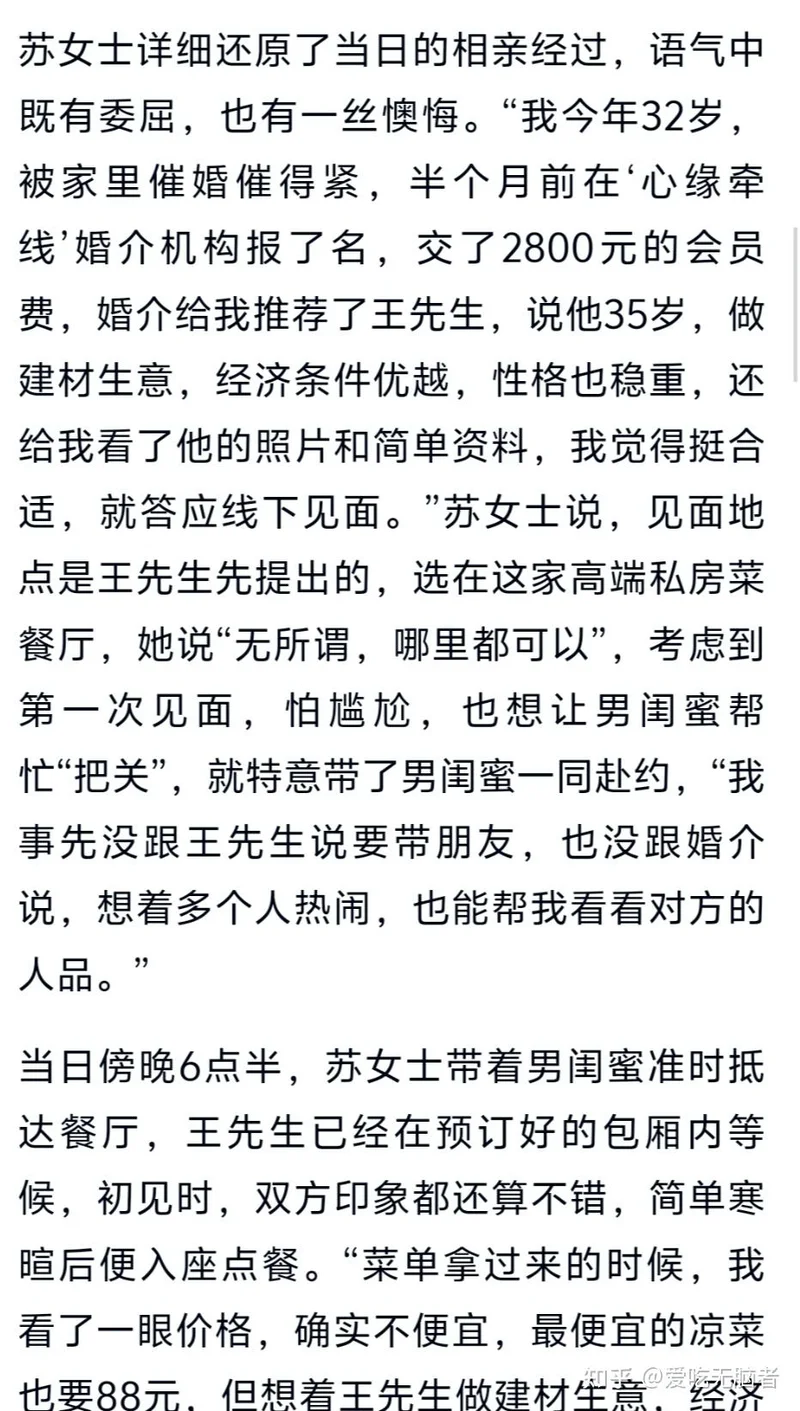 经过机构筛选,一位姓王的先生比较符合苏女士的择偶标准,于是双方约了线下见面。