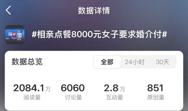 最近,上海一场“天价相亲饭局”冲上热搜,引发广泛关注和争议。
